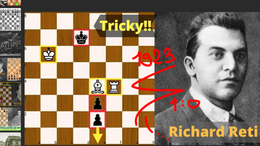 Рихард Рети медленно, как "белый" каток закатывает в черный асфальт фигуры Акибы Рубинштейна (Карлсбад, 1923, 1-0, дебют Цукерторта)