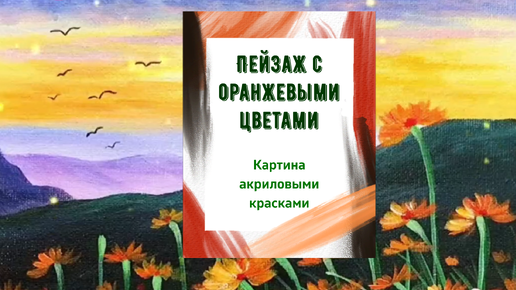 Пейзаж с оранжевыми цветами красками. Пошаговый мастер-класс рисования красками.