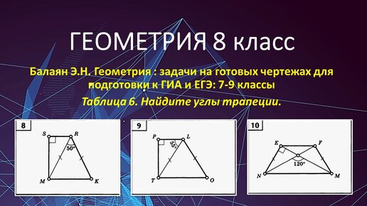 Геометрия 8 класс. Ищем углы трапеции по готовым чертежам к №№ 8, 9, 10