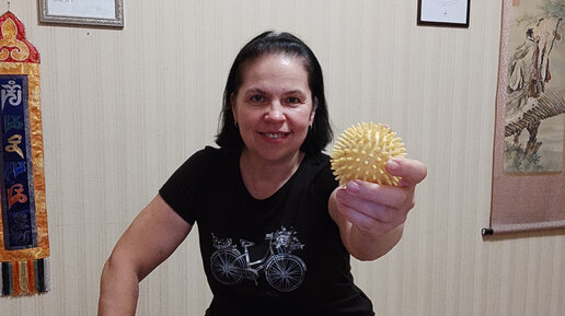 Массаж ступней с помощью колючего мячика.