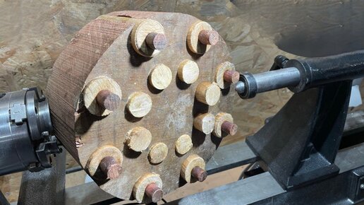 В круглую заготовку вбил колушки. Смотрим до конца. Это будет.......