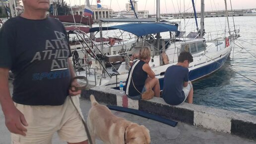 Мама с сыном-подростком ловят рыбу на набережной Ялты. Молодая мама - беседует с сыном, пока он ловит рыбу+набережная Ялты. Август 2023