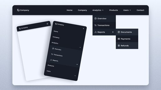 Отзывчивая и выпадающая горизонтальное меню с использованием HTML CSS и JavaScript