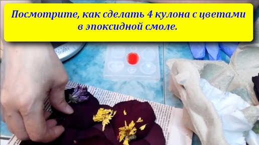 Посмотрите, как сделать 4 кулона с цветами в эпоксидной смоле.