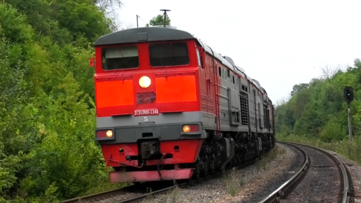 Тройник-гибрид 3ТЭ10МК-1348/1195 с грузовым поездом