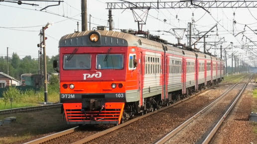 ЭТ2М-103 сообщением Посёлок — Санкт-Петербург делает остановку на о.п. Паровозный музей