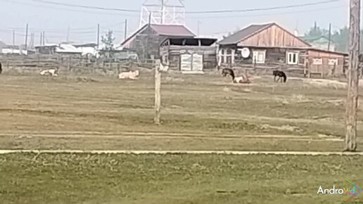 Минутка из жизни села, кони и коровы в дыму пасутся. Зато насекомых нет...