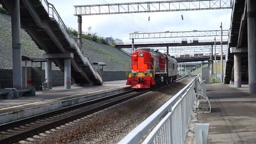 Тепловоз ТЭМ2-6240 с мобилным диагностическим вагоном и тифоном Т-9.