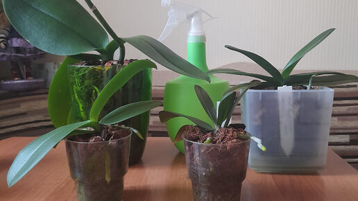 Чищу орхидеи от строительной пыли и обрабатываю антистрессом.