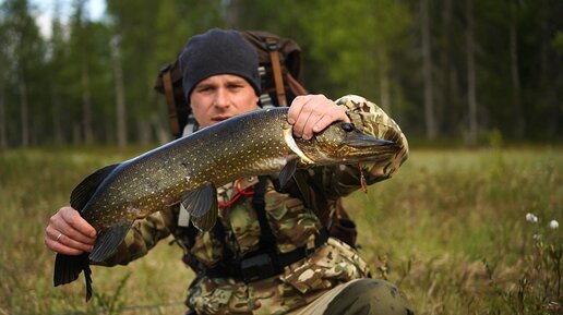 НАШЕЛ ОЗЕРО В БОЛОТЕ И СРАЗУ ПОЙМАЛ КРУПНУЮ ЩУКУ. РЫБАЛКА НА ЩУКУ . ОДИН В ТАЙГЕ. ПРИРОДА.СЕВЕРНАЯ ТАЙГА.