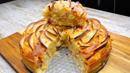🍏У вас есть 3 яблока? Показываю рецепт ЛЕНИВОГО, но очень КРАСИВОГО пирога на скорую руку! Мало теста, много яблок.