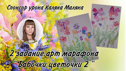 2️⃣ Задание арт марафона " БАБОЧКИ ЦВЕТОЧКИ 2 " 🦋 Рисуем отпечатками 🌸