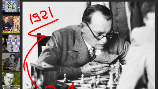 А. Алехин взял в компаньоны швейцарского маэстро Отто Циммермана, играя черными в шахматы против Донегана и Мюллера (Цюрих, 1921, 0-1)
