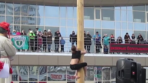 Суперское снятие подарка с масленичного столба. Ангарск 26 02 2017. «Фестиваль»
