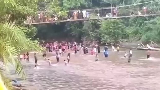 Подвесной мост обрушился во время соревнований по ловле уток в Индонезии