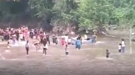 В Индонезии на людей упал подвесной мост
