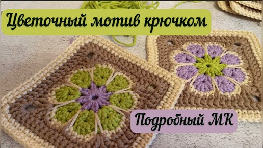 Идеи для остатков шнура🌺☺️Еще один красивый мотив крючком👜🪄🧶 Африканский цветок в квадрате⭐️🌈🪷