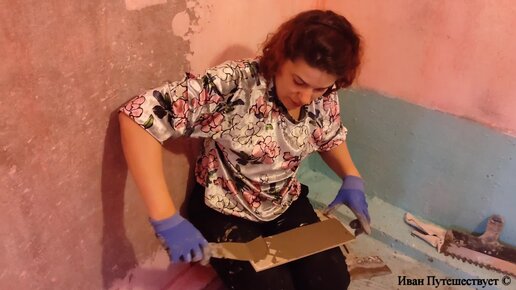 19-й день работ в ванной комнате. Ремонт своими руками. Укладываем плитку на пол.