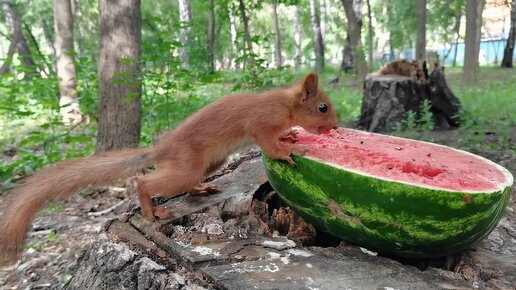 Далее: Бельчёныш нашёл арбузик
