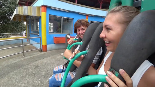 Мама бесстрашная, первый раз на аттракционах и такой восторг, она не пожалела, что пошла