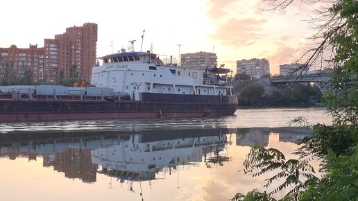 Теплоход Денис Давыдов на Волго-Донском Судоходном канале имени Ленина идет в сторону Ростова-на-Дону
