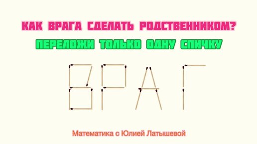 Как врага СДЕЛАТЬ родственником? Переложи только ОДНУ спичку!