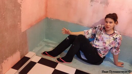 20-й день работ в ванной комнате. Ремонт своими руками. Укладываем бортик и затираем пол.