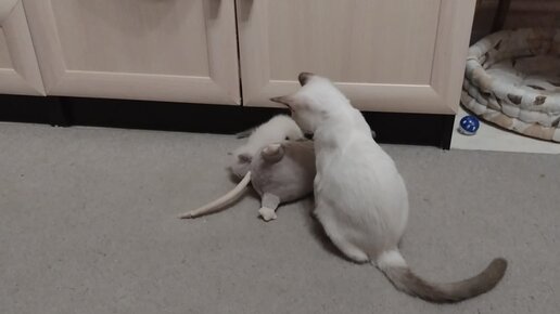 Самый смелый котеночек гуляет, а остальные пока еще не выходят на белый свет