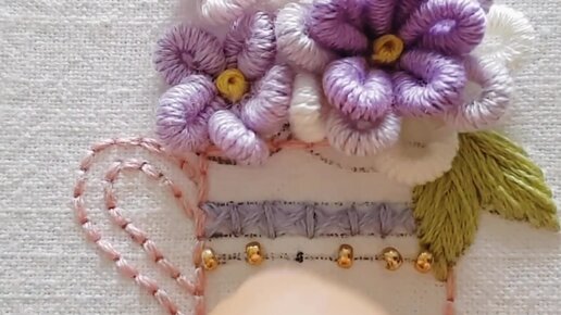 Вышивка - фиалки. Вышивка цветов. Объемная вышивка
