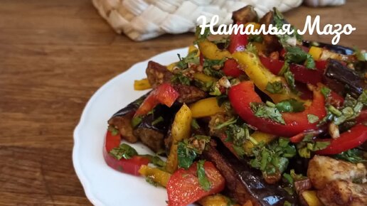 Салат с жареными баклажанами. Не сложно, но очень вкусно.