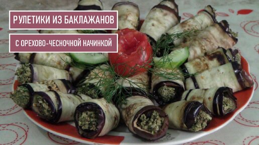 Закусочные рулетики из баклажанов с орехово-чесночной начинкой