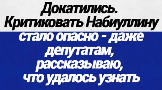 Докатились. Критиковать Набиуллину стало опасно - даже депутатам, рассказываю, что удалось узнать