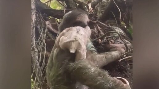 Душещипательная история воссоединения мамы-ленивца с малышом, который упал на землю - им помог случайный добрый прохожий