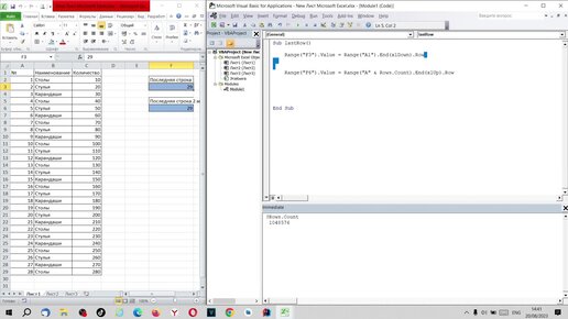 Как вычислить последнюю строку в VBA, Excel. Второй метод.