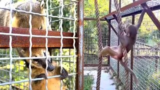 С ТАКОЙ Люсей носушонок ДРУЖИТЬ НЕ ХОЧЕТ - ИЩЕТ ЗАЩИТУ у Сони! Гамадрил и носухи. Тайган.