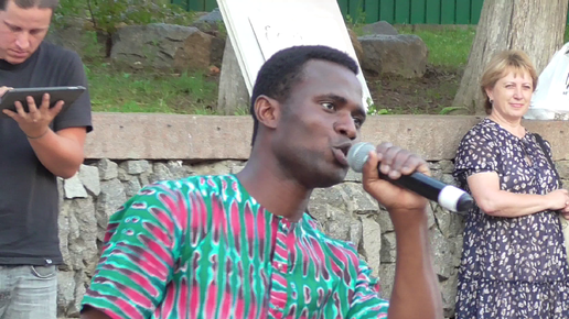 Чернокожий человек поёт песню в городе Орле. Улица Ленина. Город Орёл, август 2023 год