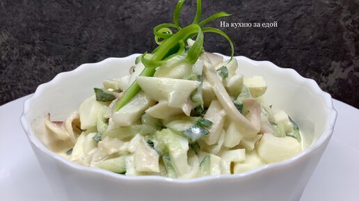 Салат с кальмарами, яйцом и огурцами (описание под видео)