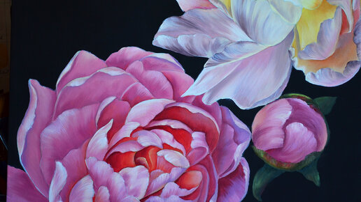 Пионы маслом на холсте. Моя новая интерьерная картина. Процесс создания.