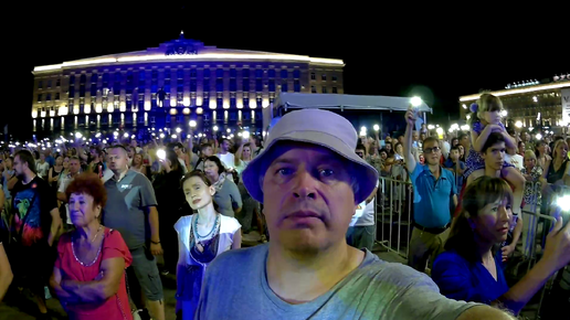 Концерт на площади. У людей фонарики