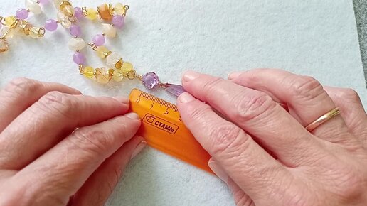 Колье из гранёных бусин натурального цитрина и лавандового аметиста.
