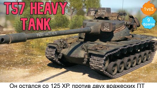 WOT. Эпичный бой на T57 Heavy 🥳 1vs3, (9 фрагов) Он остался со 125 ХР. против двух вражеских ПТ