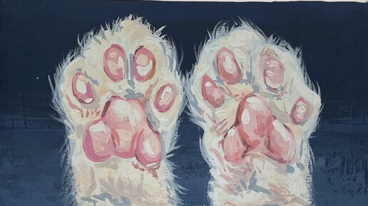 Кошачьи лапки. Простой рисунок гуашью для начинающих.