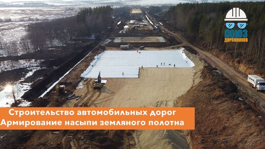 Строительство автомобильных дорог. Армирование насыпи земляного полотна #М12 #Строительство #Технологии