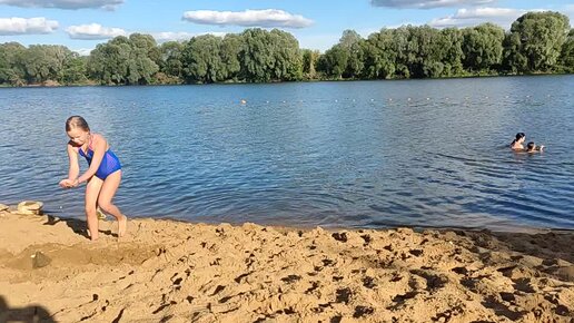 Пляж в Коломне в Колычёво в конце августа. Люди купаются, вода в Оке тёплая и чистая