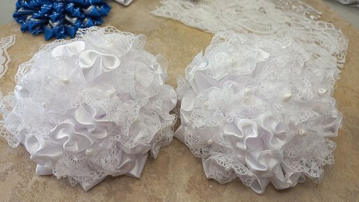 Большие пышные воздушные банты Атлас и кружево делают своё дело! Заказчица осталась довольна.