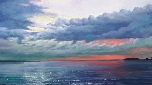 Водная стихия в живописи художницы Лилии Хайруллиной! Музыка- Людвига ван Бетховен. — "Лунная соната "под шум моря.