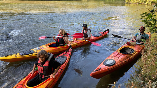 Байдарки на реке Осетр в Зарайске. Ребята пробуют прокатиться в первый раз