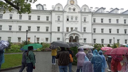 Под "божественным" дождём у входа в зимнюю обитель валаамских паломников