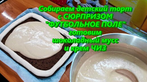 Собираем детский торт с СЮРПРИЗОМ. ФУТБОЛЬНОЕ ПОЛЕ. Готовим ШОКОЛАДНЫЙ МУСС и КРЕМ ЧИЗ НА СЛИВКАХ