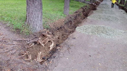 В новосибирском Академгородке при замене бордюров повредили корни деревьев